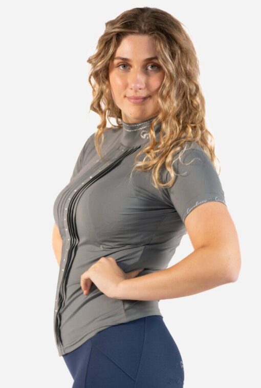 Introducing the Diana Riding Shirt, a stylish and functional addition to your riding wardrobe. This shirt is sure to become a favorite with its ultra-stretchy material that offers exceptional breathability and ensures you stay cool and comfortable during your rides.