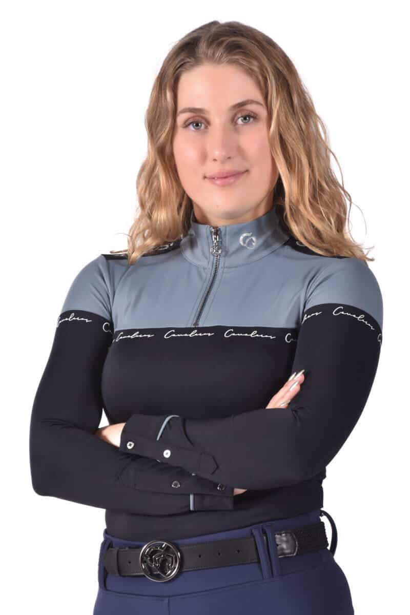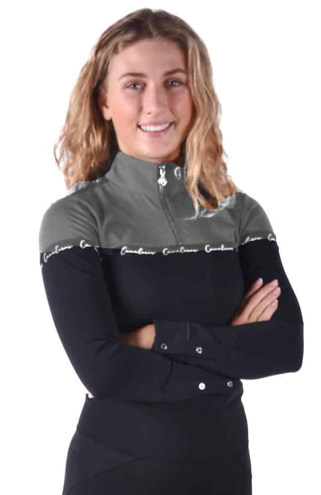 Stylish details on the new Salina Performance blouse, which is made of a technical material that is