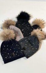 Lovely soft hat in Kashmir mix with fur tassel in real fur (racoon)