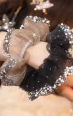 A really nice finish to your hair ornament - beautiful transparent chiffon with both rhinestones and pearls that shine like diamonds on the edge - as well as small rhinestones sprinkled over the beautiful chiffon
