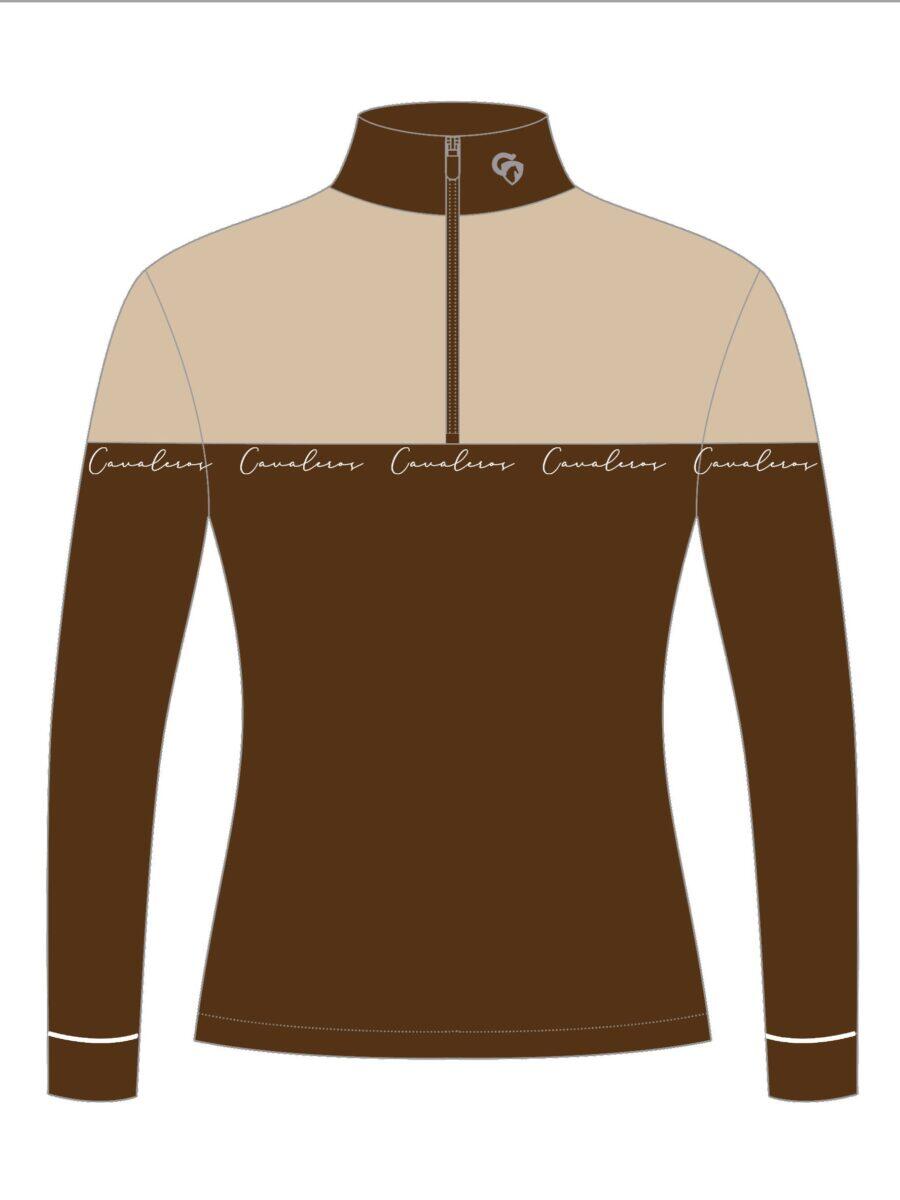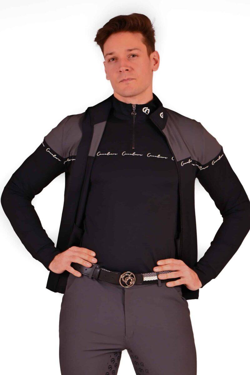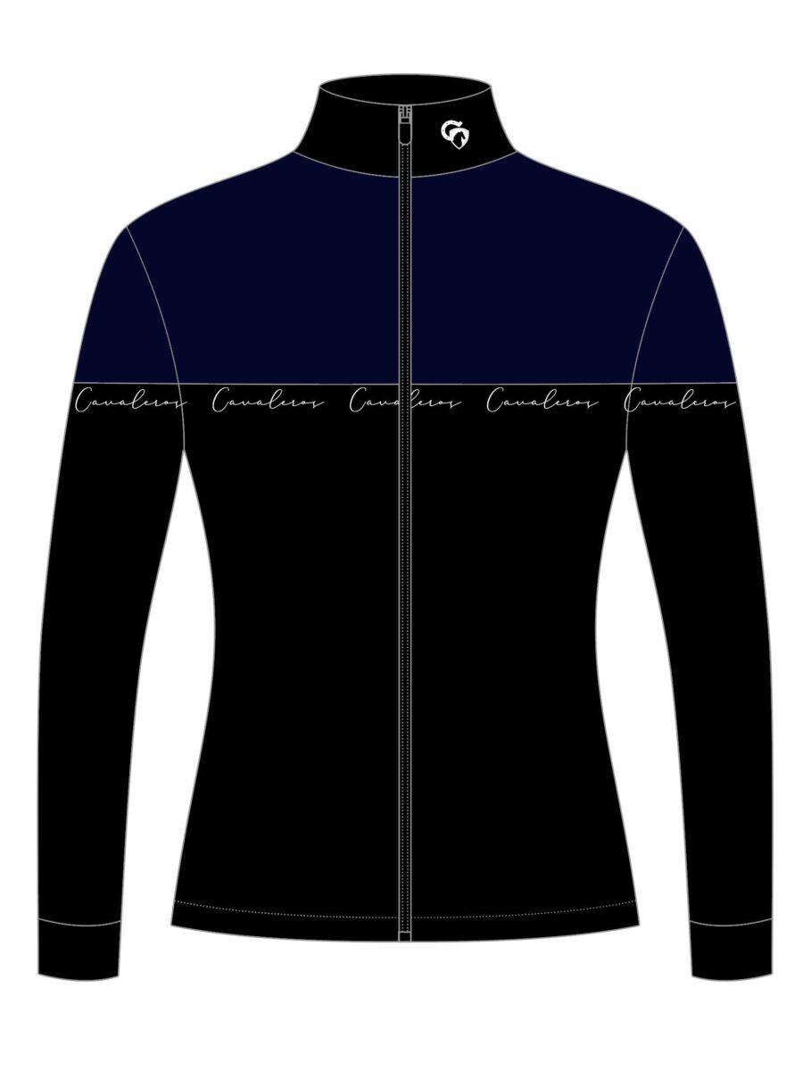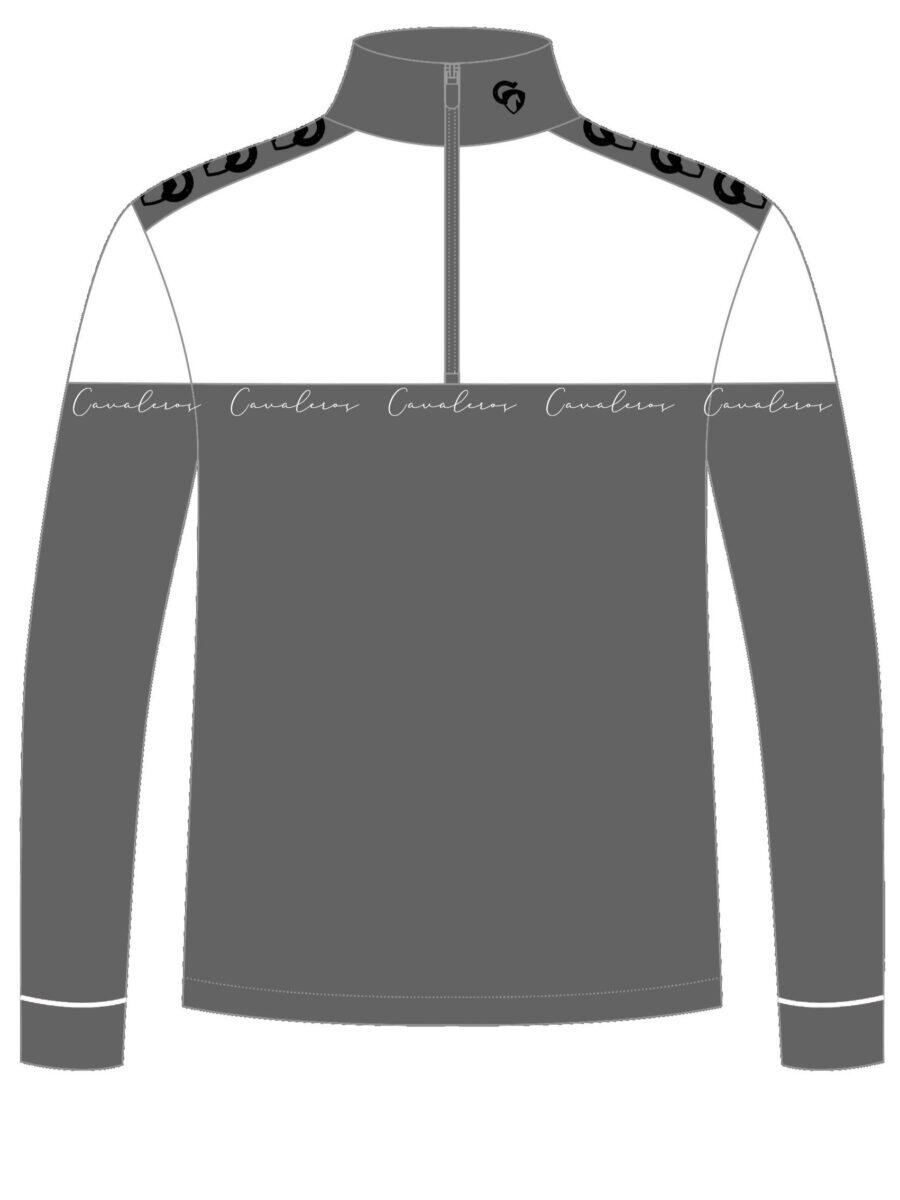 The jacket comes in 2 colors - the top is gray and the bottom is black. The collar of the jacket is black. Cavalero's logo in white italics in the black bottom of the jacket.