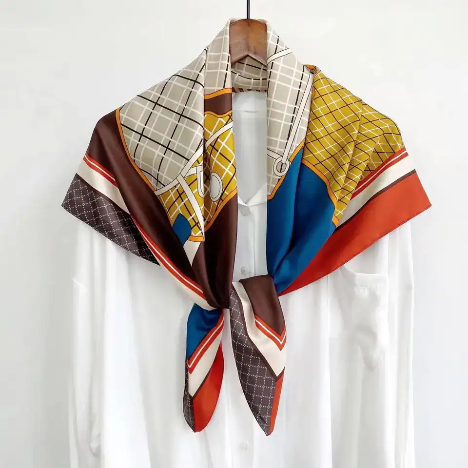 The scarf measures approximately 90 x 90 cm.