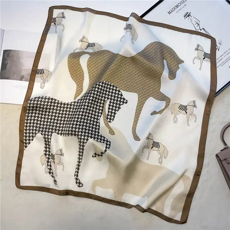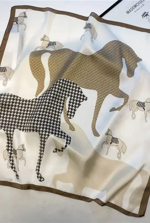 With a very nice print of horses in brown and beige colors