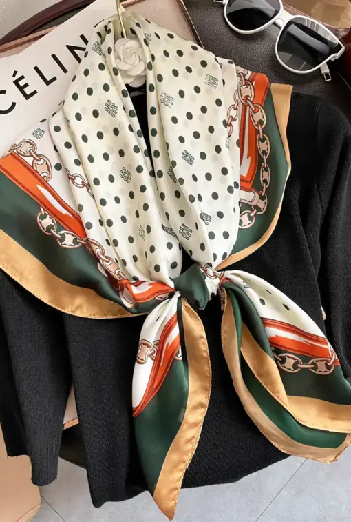 The scarf measures approximately 90 x 90 cm.