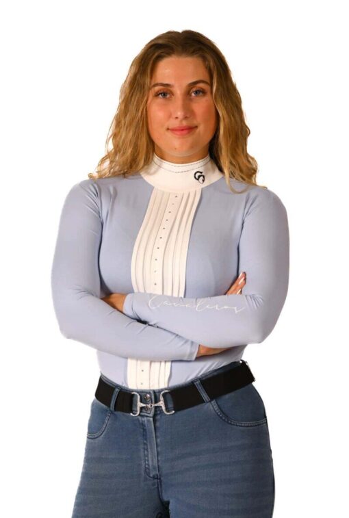 Flot lyseblå farve – Cashmere Blue – med hvid plisséring foran