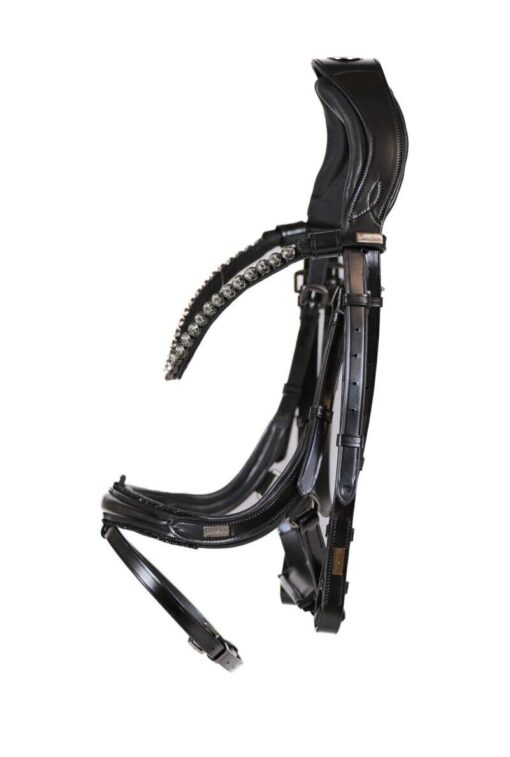 - Valgfri brug af elastiks ophæng – kan bruges med eller uden. Bemærk regler for DRF / FEI mht. til elastiske bid ophæng! Derfor kan du være nødsaget til at bruge vores almindelig bidophæng som der nemt kan skiftes til.