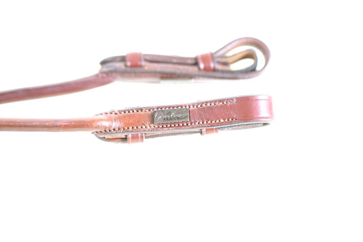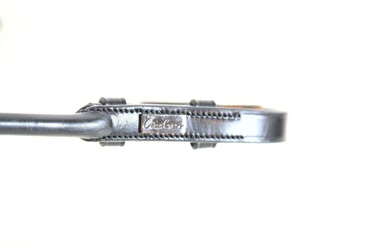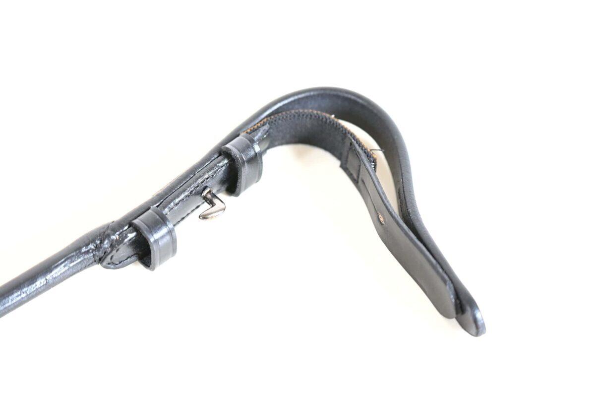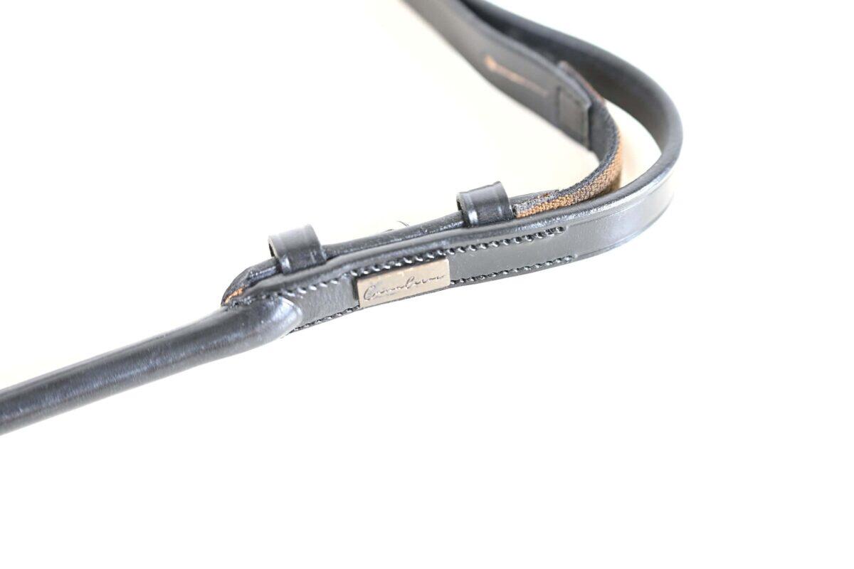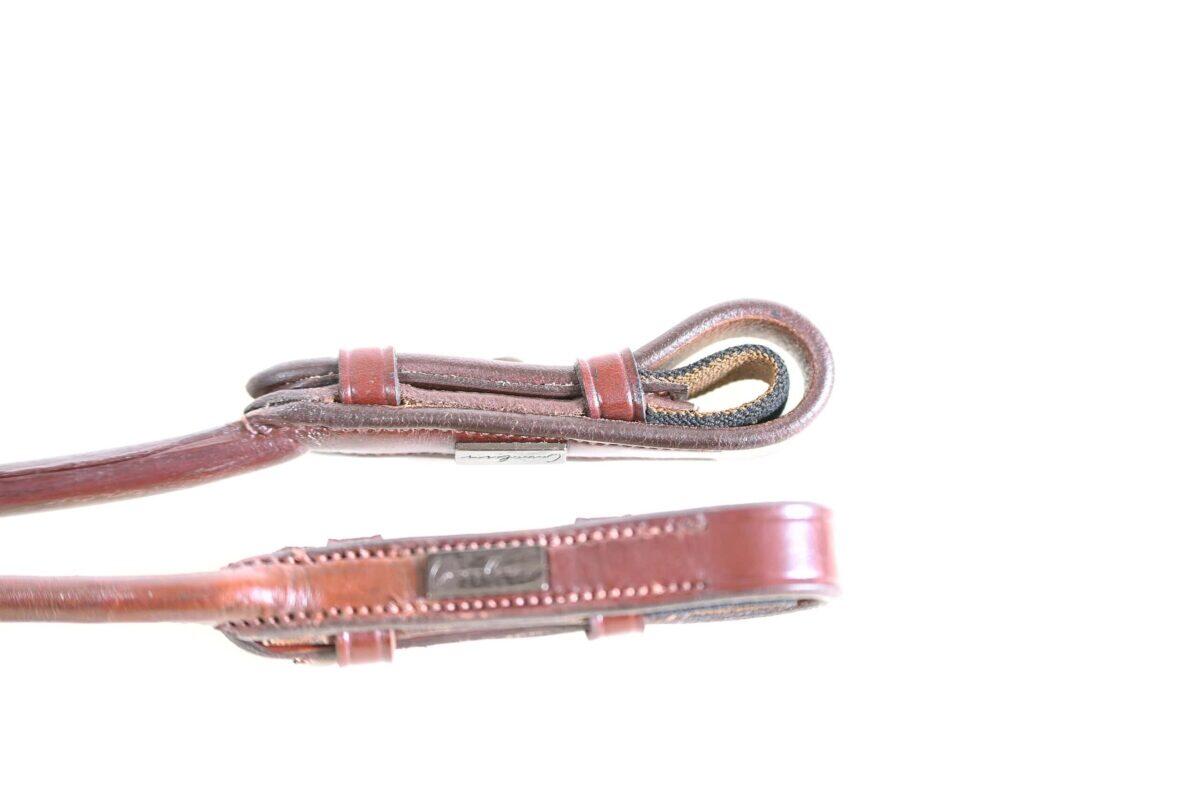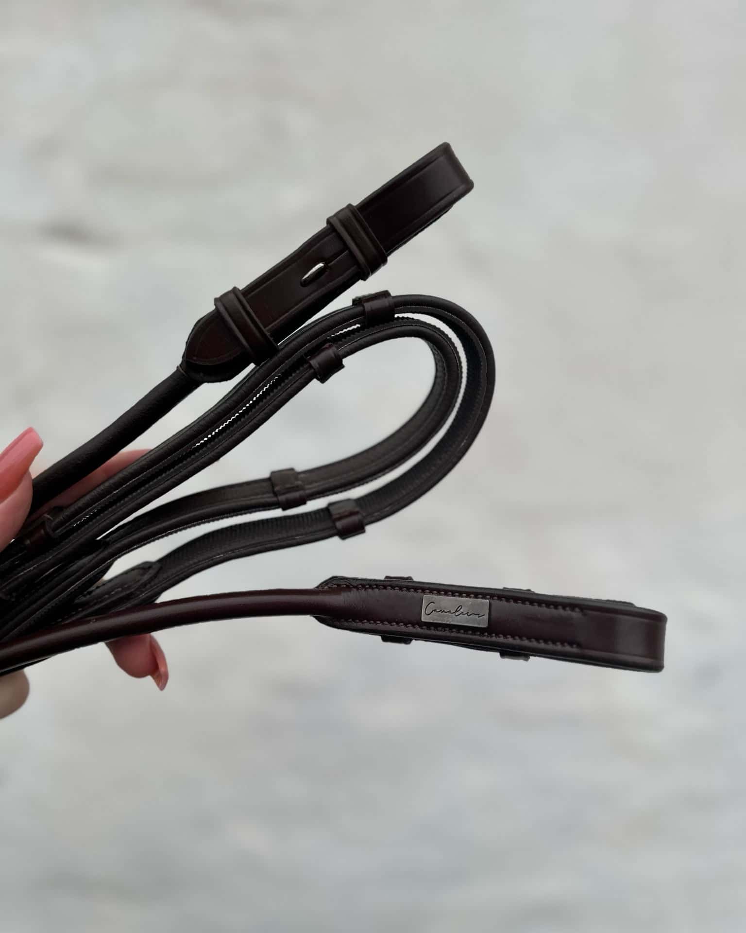 Virkelig blød kalveskinds-tøjle hvor den ene side er med blød gummi i samme farve som tøjlen.