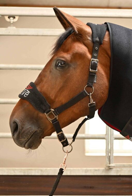 Vi har udviklet en Wave-Halter (Wave-grime) som gør det nemt at give lysterapi på hestens kæber, tænder og andre steder i hovedet hvor der er behov for at løsne op.